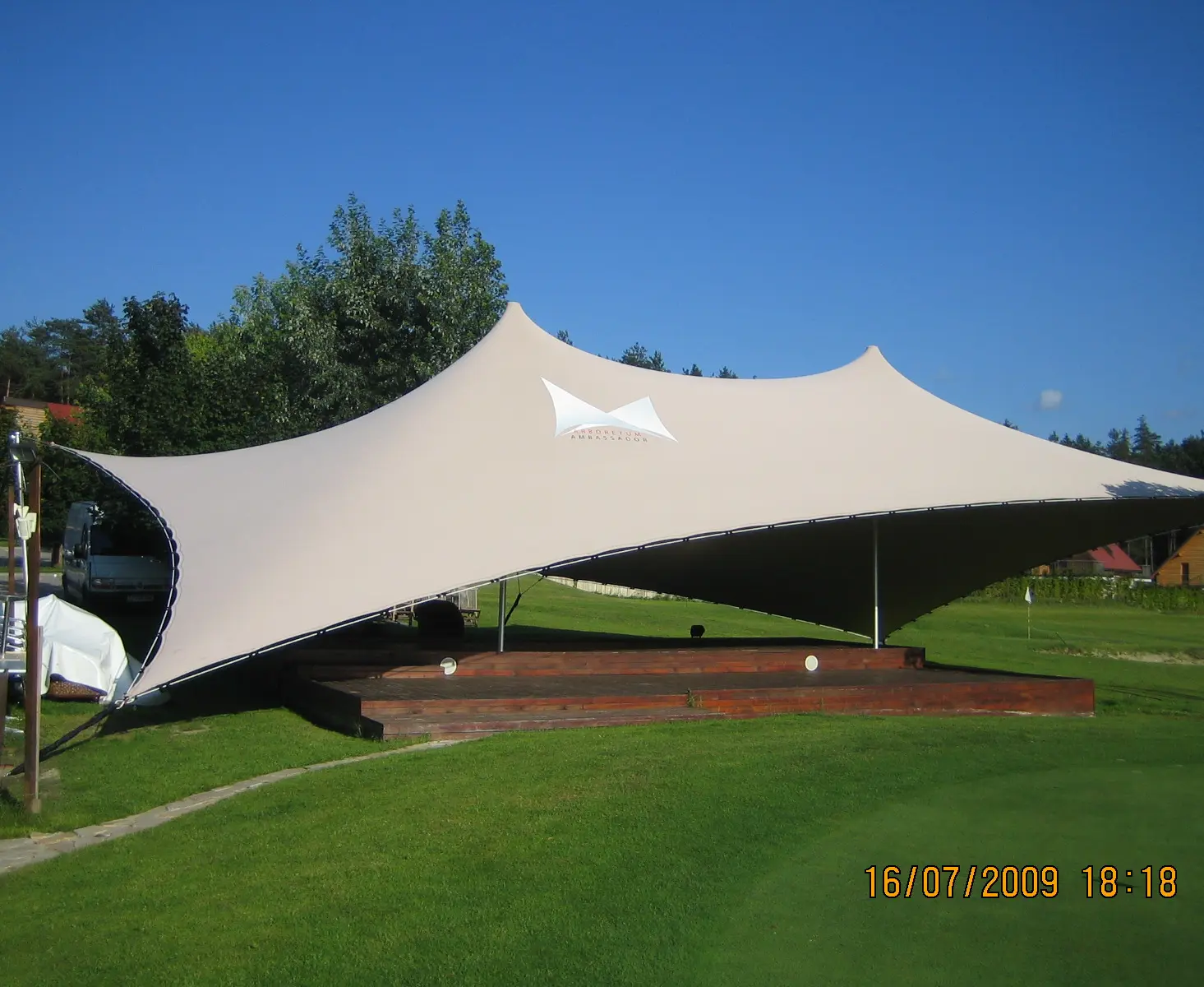 Lahka, napeta jadra ustvarijo izrazit vizualni poudarek in prijetno senco za obiskovalce. Modularna postavitev se hitro prilagodi tlorisu stojnice ter izboljša prepoznavnost blagovne znamke.